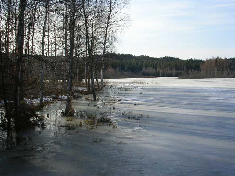 - La glace du lac était encore très épaisse par endroit (20cm au moins) mais on ne pouvait plus marcher dessus (trop dangereux)
